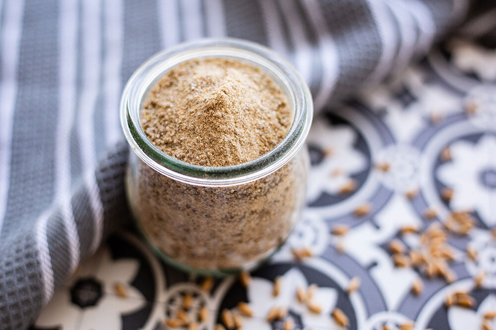 Nachdem die Körner abgekühlt sind, einfach in den Mixtopf geben, für 40 Sek. / Stufe 10 zerkleinern und in ein trocknenes Schraubglas füllen.