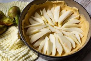 Birnen schälen, entkernen, in Streifen (ca. 3-4 mm) schneiden und auf dem Boden verteilen.