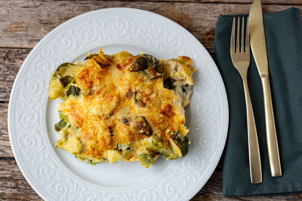 Rosenkohl-Kartoffel-Auflauf mit dem Thermomix und der mittleren Ofenhexe oder im Airfreyer