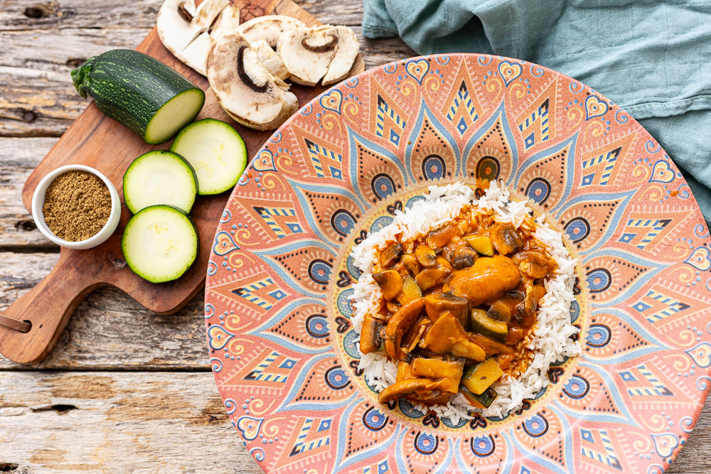 Veganes Masala mit Zucchini und Pilzen aus dem Thermomix