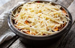 Anmerkung: Kartoffeln würde ich im Thermomix garen, nachdem der runde Zaubermeister 10 Min. im Ofen war: In Stücken in das Garkörbchen geben und mit 500 g Wasser für ca. 28 Min. / Varoma / Stufe 1 garen. Nudeln würde ich im Topf auf dem Herd nach Packungsangabe zubereiten. Reis im Reiskochmodus (benötigt 28 min).